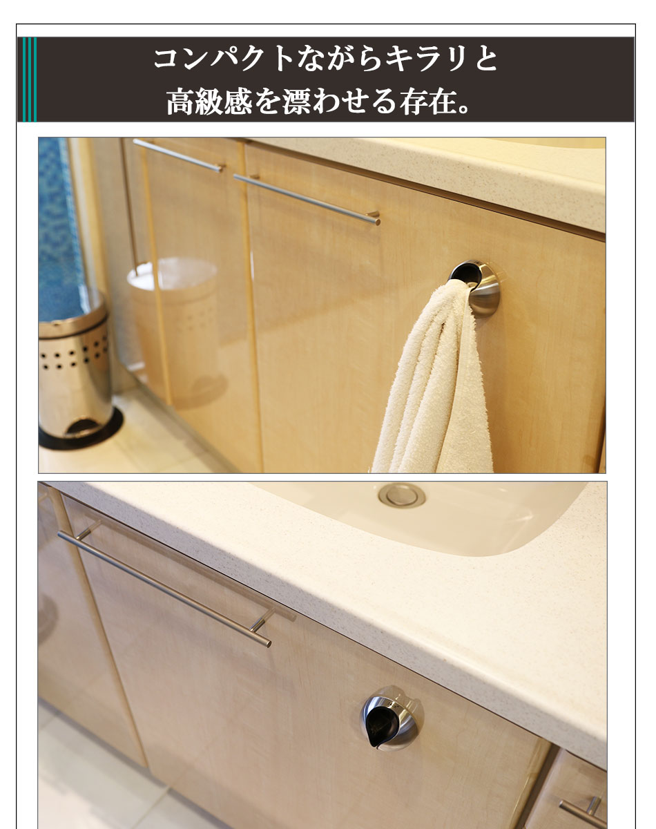 一般的なタオルハンガーに比べて小型なので邪魔になりません。