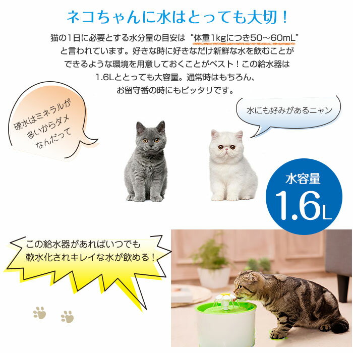 ● 旅行や出張などの場合にも最適!1.6Lと水容量もたっぷりなので、約5-7日間新鮮な水を提供でき、お留守番にも安心です。