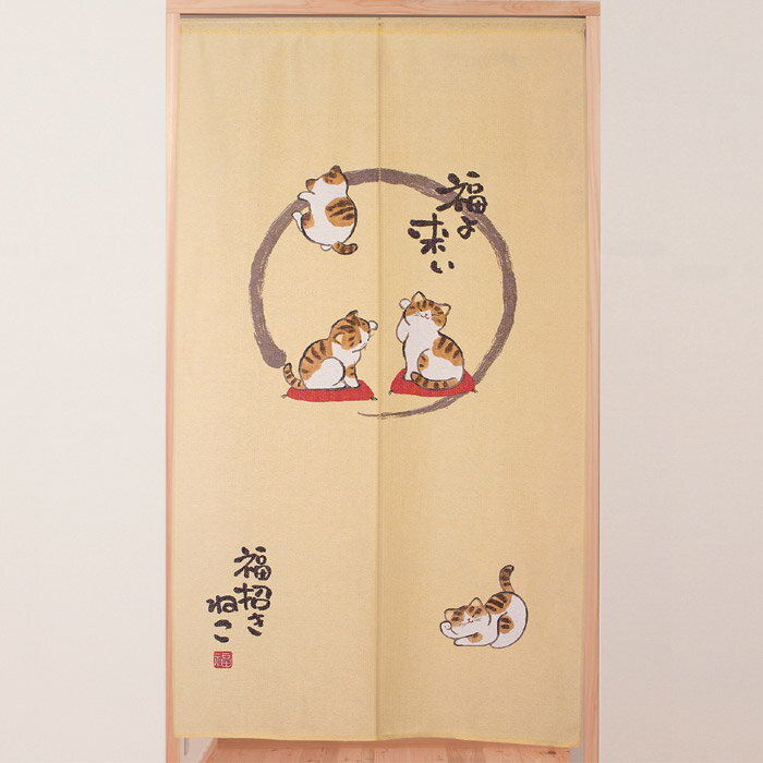 福招き猫のれんのれん 福招き猫のれん 暖簾 玄関 キッチン リビング 目隠し効果 ロング 和柄 和風 ロング丈 間仕切り カーテン※沖縄・離島は別途中継料発生