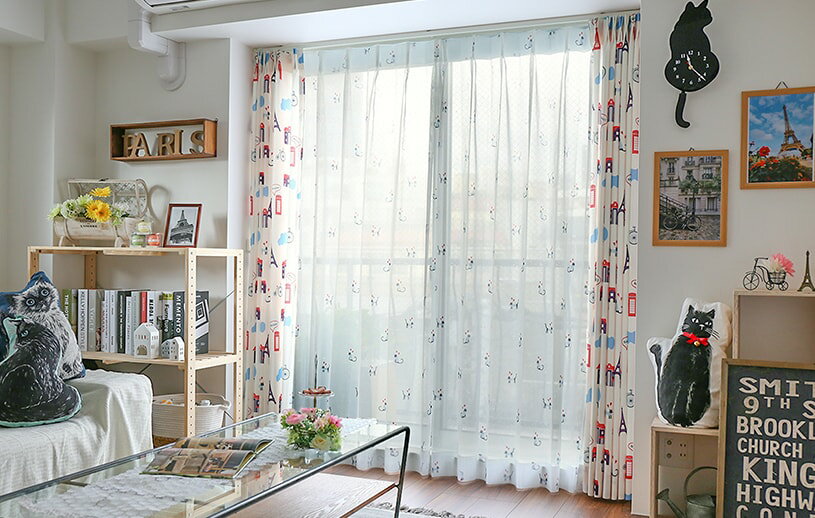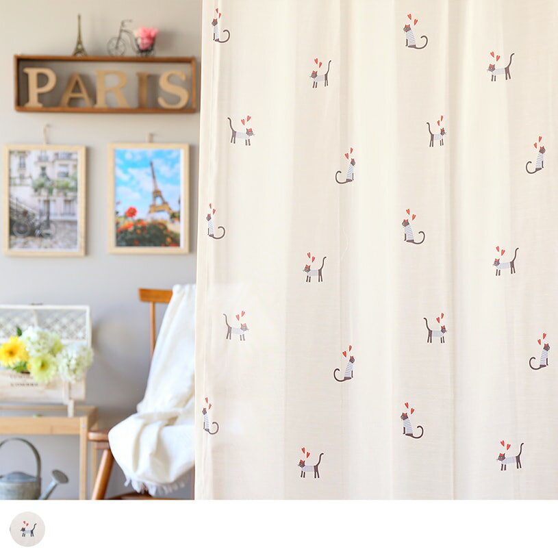 1cm刻みの カーテン オーダーカーテン レースカーテン 【最短6営業日で出荷】【代引き不可】キッズ 〜ミネット ボイル〜 ホワイト レース ねこ ネコ 猫 こども