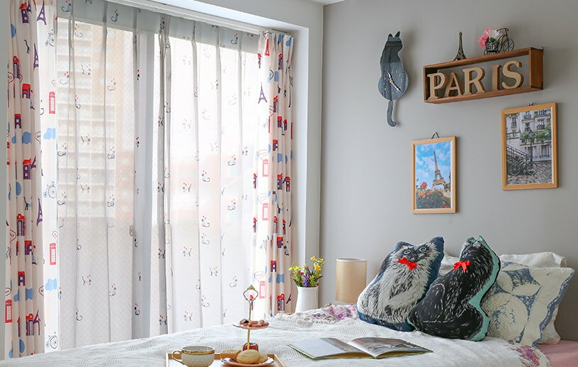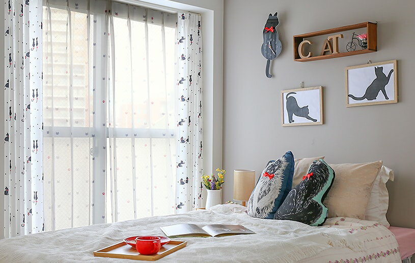 【幅101から200cm】【丈81から110cm】プリーツが綺麗なオーダーカーテン 猫柄 ピンク