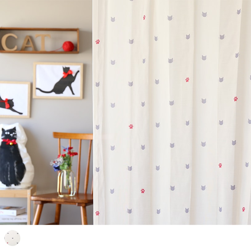 【最短6営業日で出荷】【代引き不可】1cm刻みの カーテン オーダーカーテン レースカーテン キッズ 〜シピ ボイル〜 ホワイト レース ねこ ネコ 猫 こども