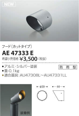 【光色の角度[中角][白熱球60W相当][白熱球40W相当]はこちら】 【光色の角度[広角][白熱球60W相当][白熱球40W相当]はこちら】 【別売り フード・レンズはこちらをクリック】 ●マリンライト特集●アンティーク特集●和風照明特集 ●かわいい照明特集●エクステリア照明TOPへ移動●KOIZUMI照明TOPへ移動 ●関連商品 AE47333E 2,442円 AE47337E 2,442円 AE47335E 2,981円 スポットライト AU47326L 白熱球60W相当 電球色 中角 シルバー 9,226円 スポットライト AU47327L 白熱球60W相当 電球色 広角 シルバー 9,226円 スポットライト AU47330L 白熱球40W相当 電球色 中角 シルバー 8,074円 スポットライト AU47331L 白熱球40W相当 電球色 広角 シルバー 8,074円 スポットライト AU47310L スパイクタイプ プラグ付 白熱球60W相当 電球色 中角 シルバー 13,263円 スポットライト AU47311L スパイクタイプ プラグ付 白熱球60W相当 電球色 広角 シルバー 13,263円 スポットライト AU47314L スパイクタイプ プラグ付 白熱球40W相当 電球色 中角 シルバー 12,111円
