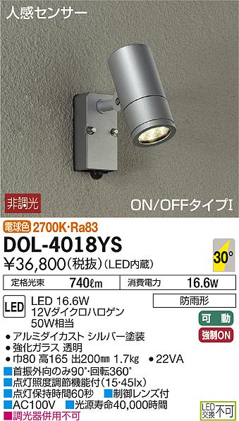 ページ内のPC版表示をクリックしてご確認ください 【カラーバリエーションはこちらをクリック】 ●スポットライト センサー無し特集●スポットライト 人感センサー特集●スポットライト スパイクタイプ特集 ●スポットライト 看板照明特集●スポットライト 防犯灯特集●DAIKO照明TOPへ移動 ●関連商品 スポットライト DOL-4018YS ダイクロハロゲン50w相当 センサーあり シルバー 23,386円 スポットライト DOL-4018YB ダイクロハロゲン50w相当 センサーあり 黒色 23,386円 スポットライト DOL-4017YS ダイクロハロゲン50w相当 シルバー 17,030円 スポットライト DOL-4017YB ダイクロハロゲン50w相当 黒色 17,030円