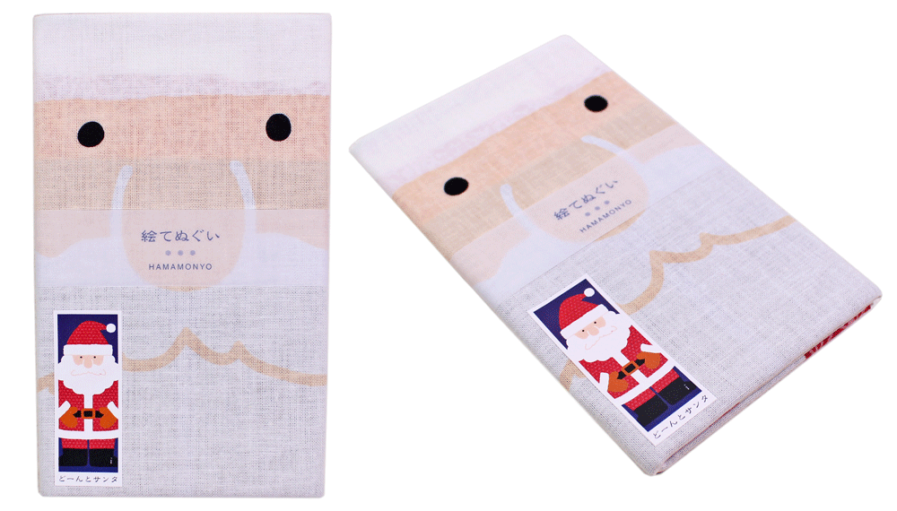 【3枚以上で送料無料】絵てぬぐい「どーんとサンタ」【濱文様 縦型 生地 冬柄】