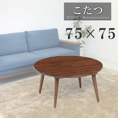 BESIDE 商品名 家具調こたつ 商品説明 ●サイズ75×75cmの丸型家具調こたつ本体です ●落ち着いた色味と木目が魅力のシンプルモダンな家具調こたつ おしゃれなフォルムがみんな集まるコタツスペースにおススメ!です ●円形でスリムなデザインこたつ ●天板は無垢材を使用し、オフシーズンにはリビングテーブルとしても存在感があります ★
